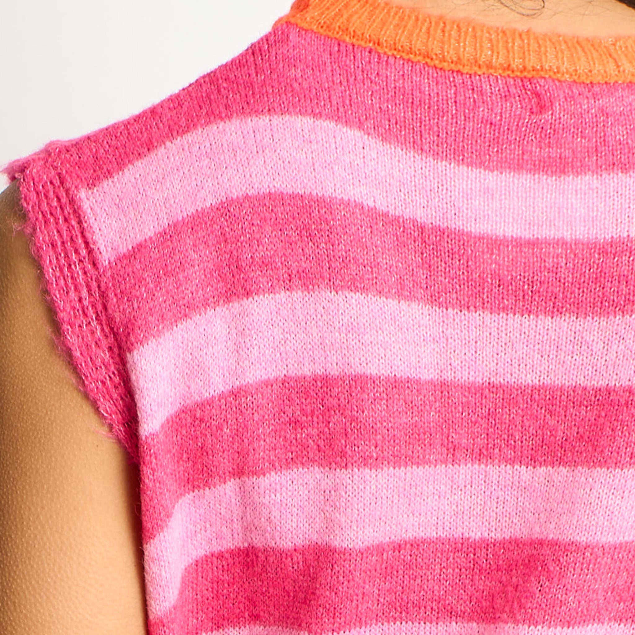 Striped Italian Wool Blend Knitted Tank Top - Pink