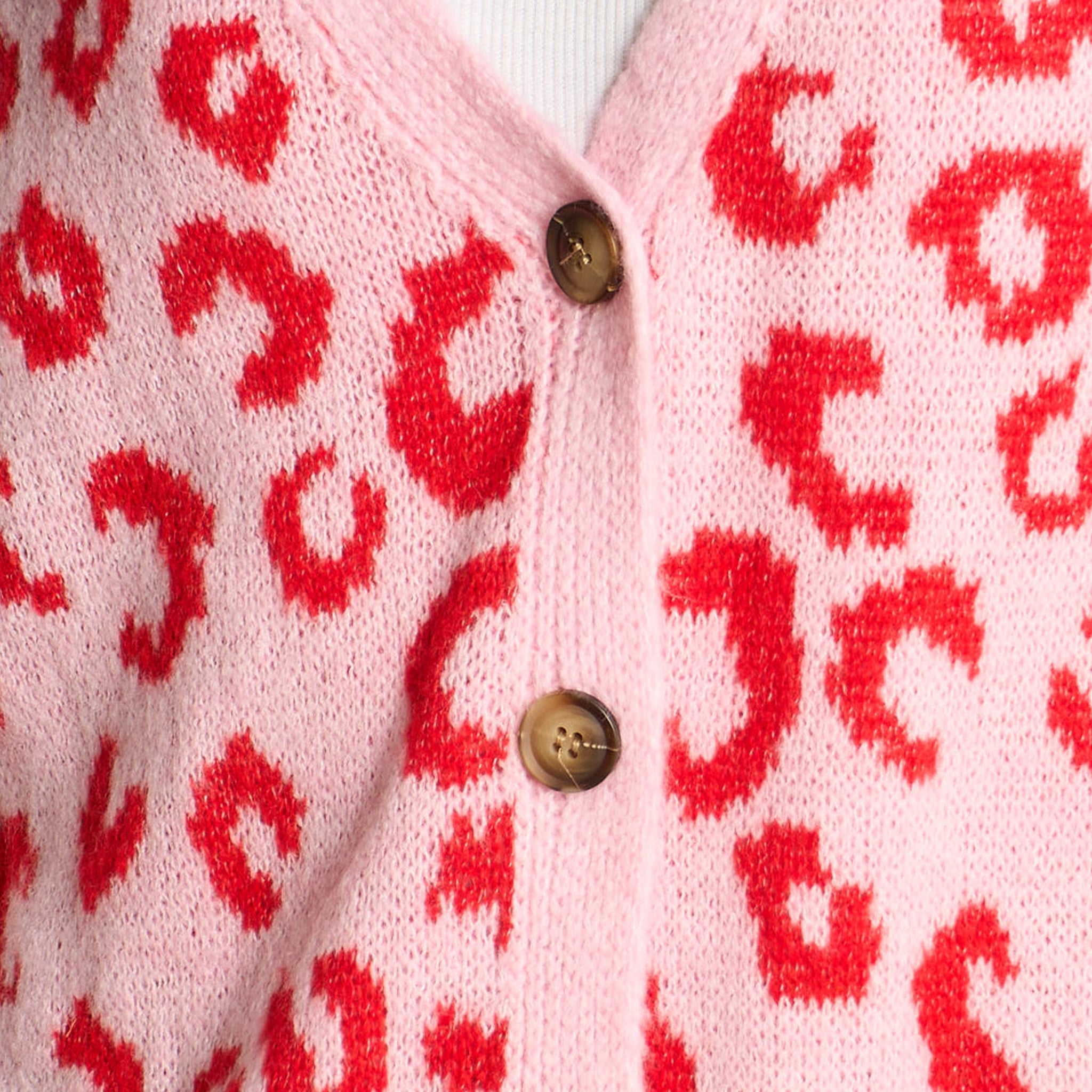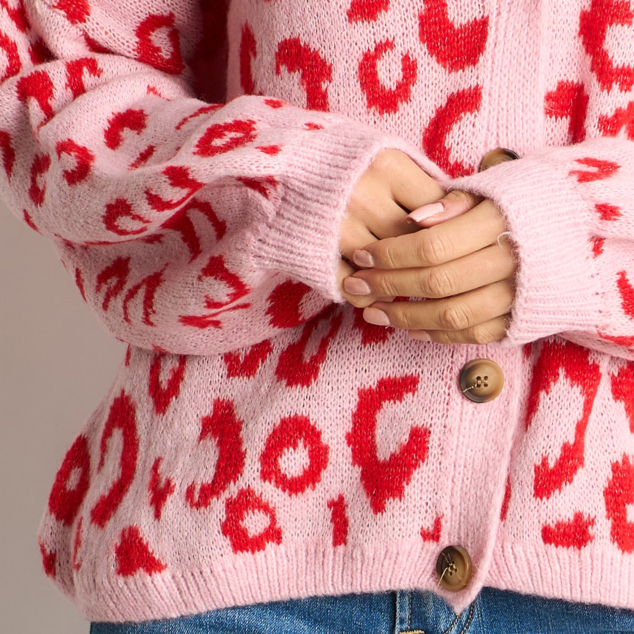 Leopard Print Italian Wool Blend Cardigan - Pink