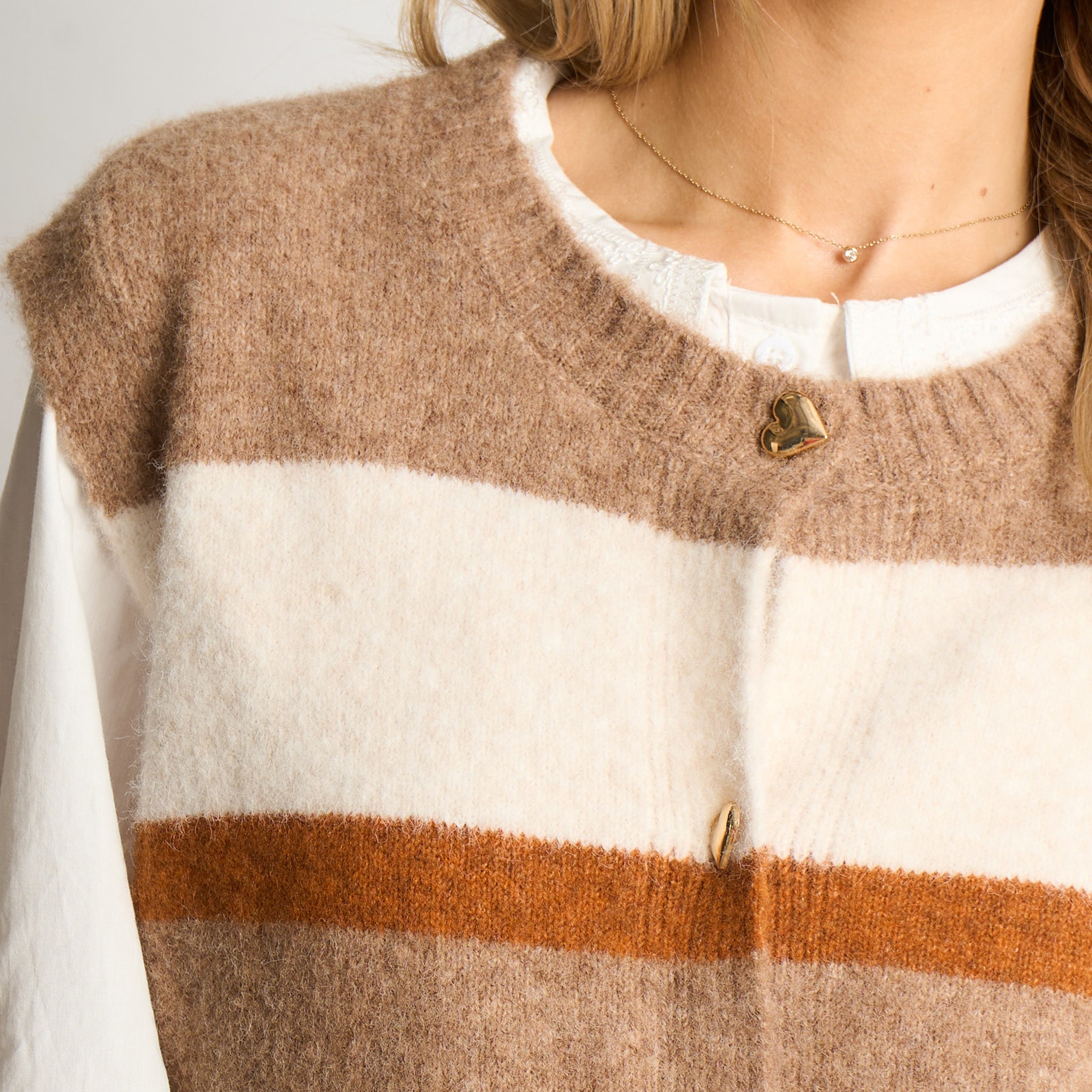 Heart Buttons Striped Sleeveless Vest in Neutral