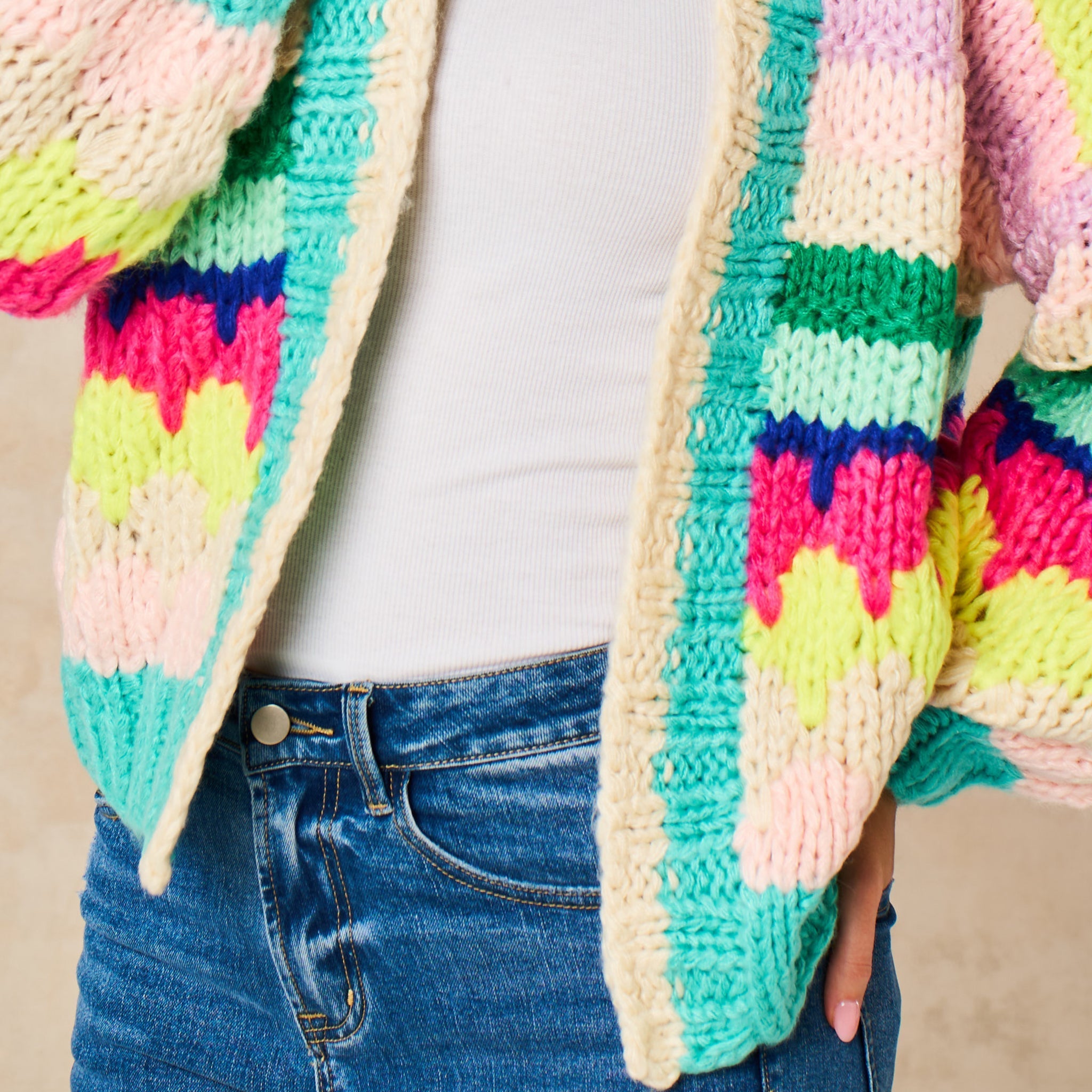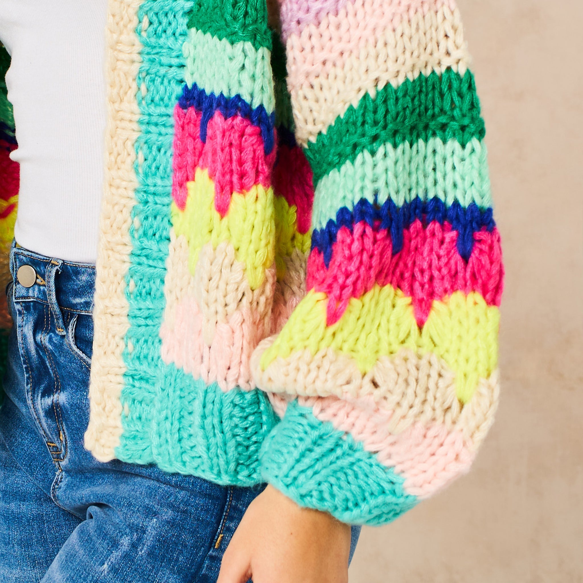 Hand Knitted Rainbow Striped Cardigan in Multi