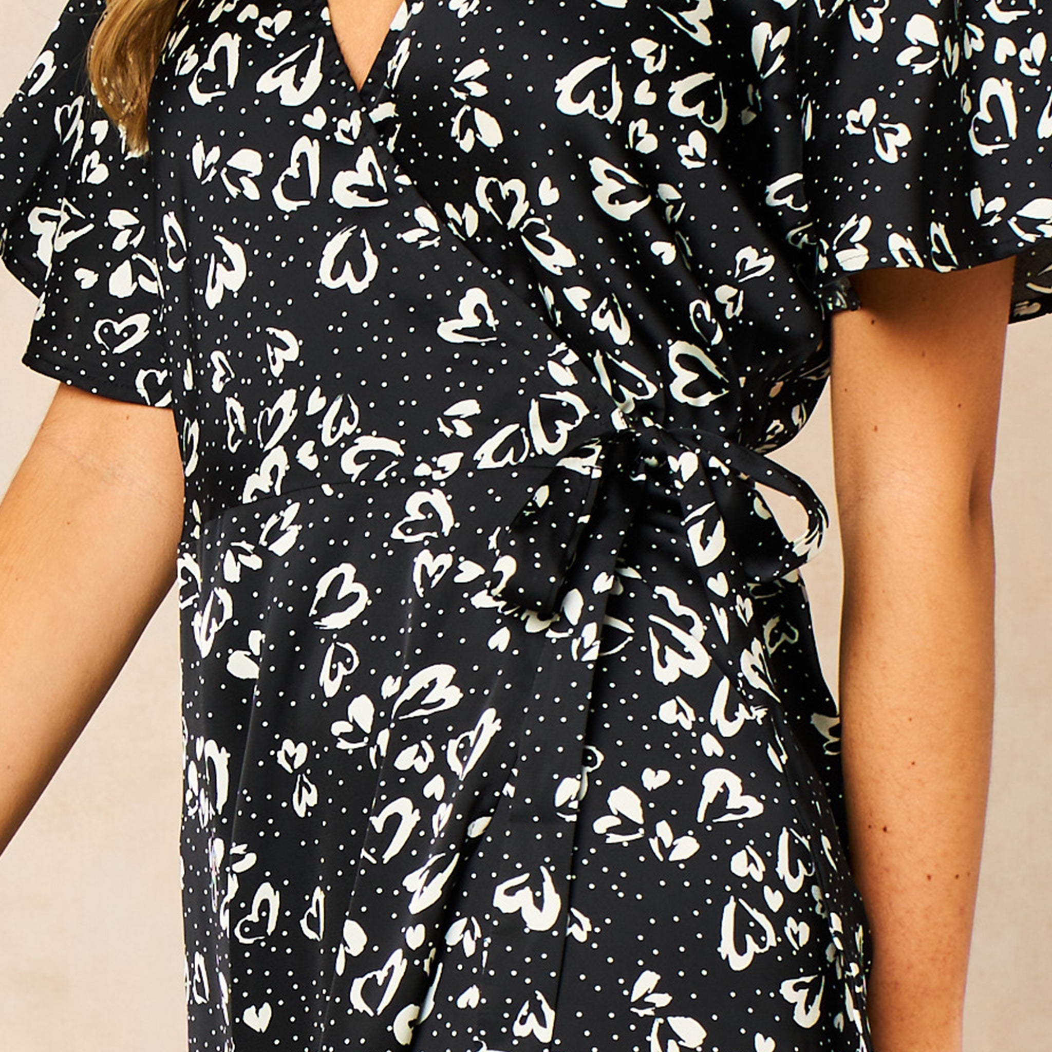 Love Hearts Midaxi Wrap Dress in Black