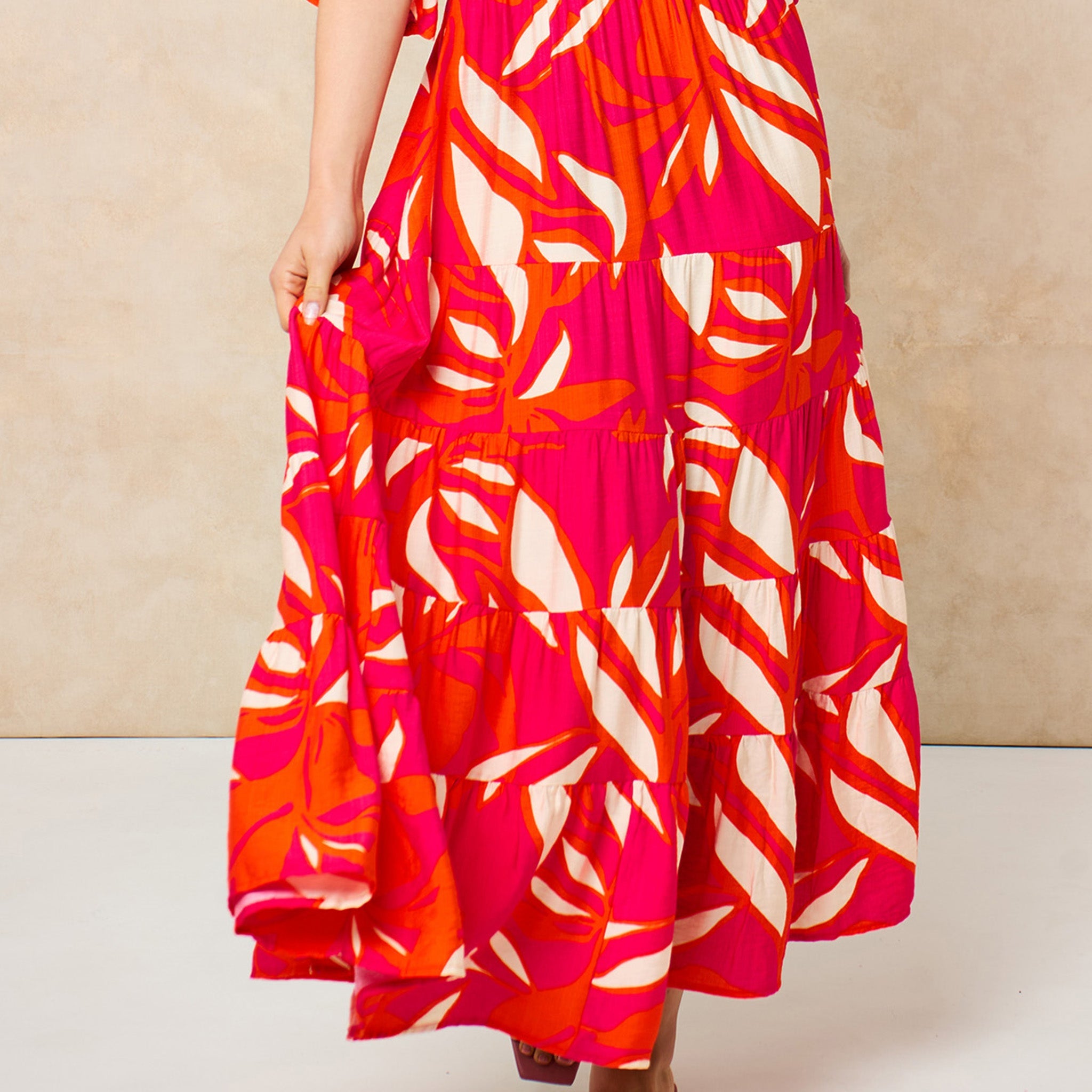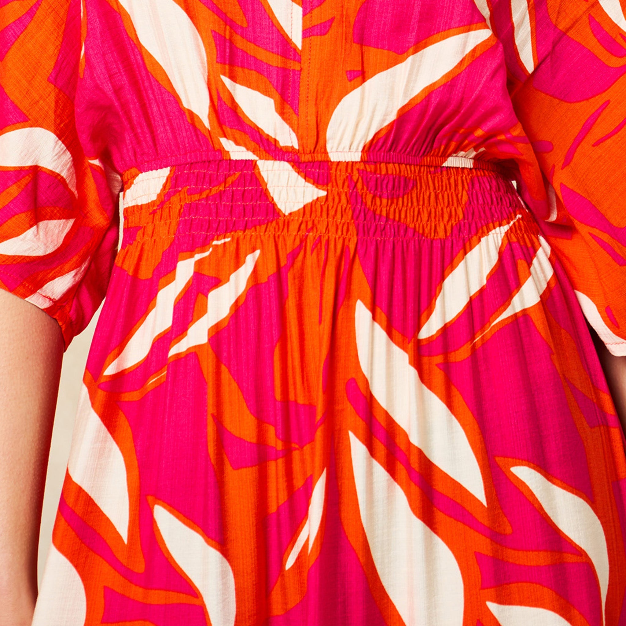 Tropical Floral Maxi Kaftan Dress in Hot Pink