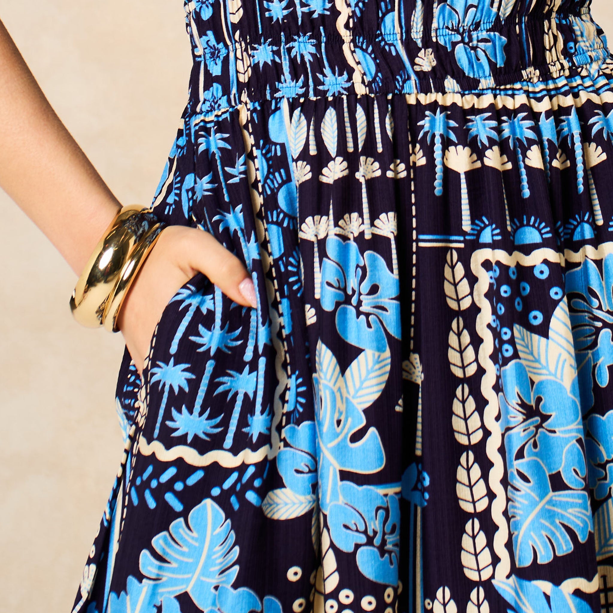 Tile Print Tiered Maxi Dress in Navy Blue
