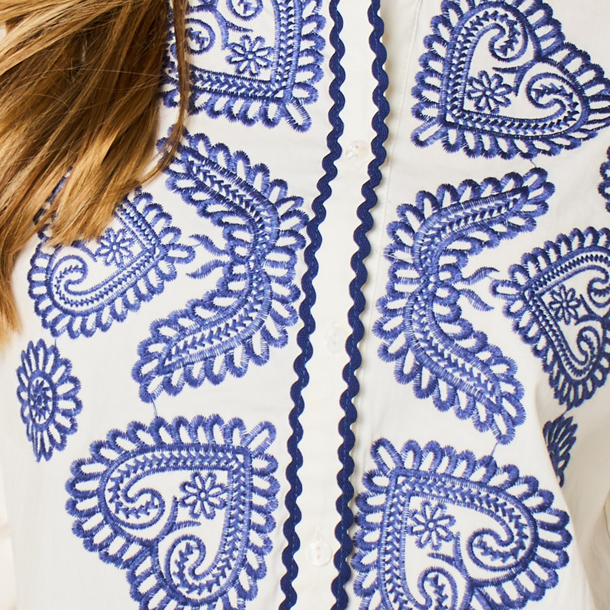 A lightweight cotton shirt featuring a bohemian inspired embroidered love heart design. This beautiful blouse has relaxed fitting long sleeves and buttons on the front, designed to keep you feeling cool in warmer weather this piece is a summer essential.