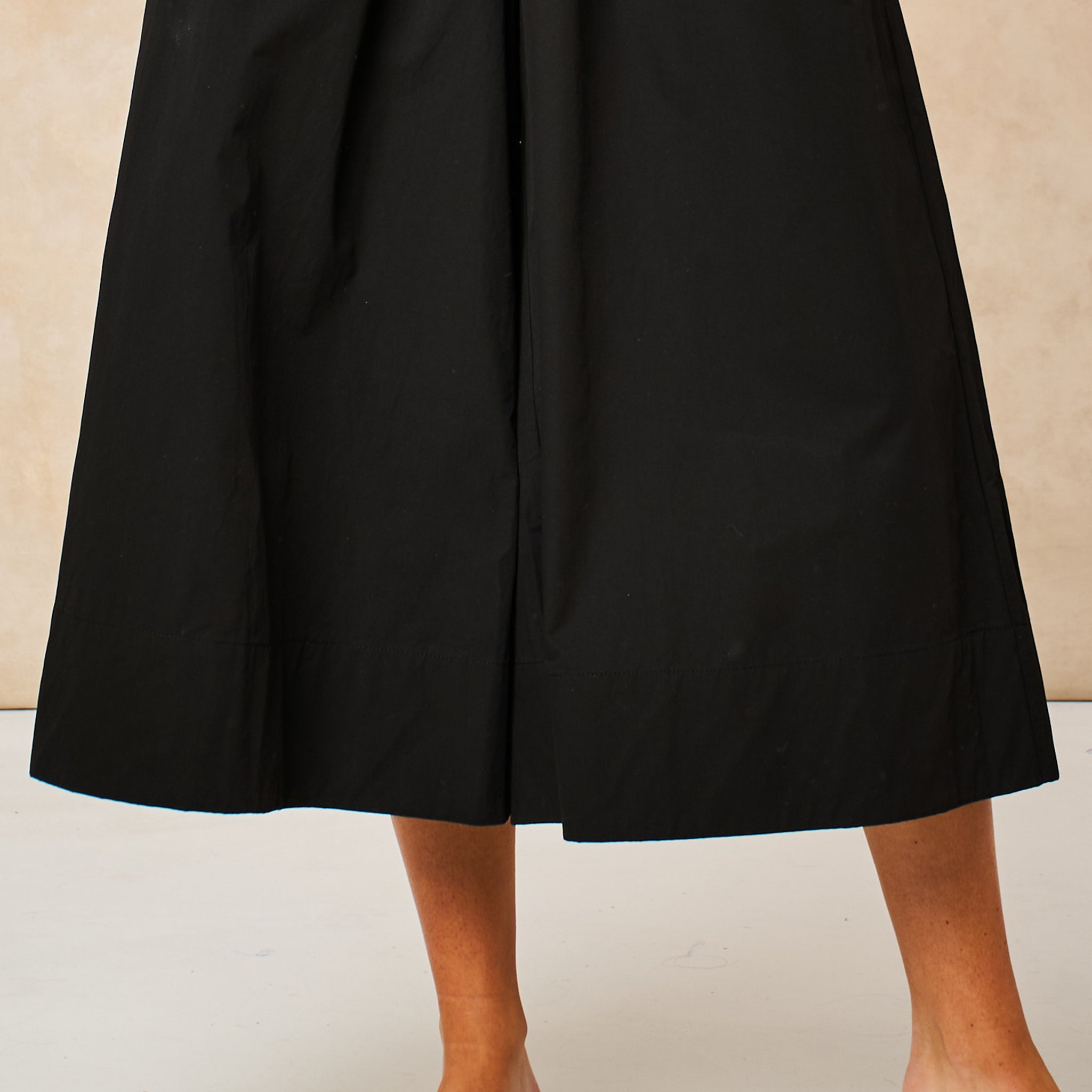 Cropped Wide Leg Cotton Trousers in Black