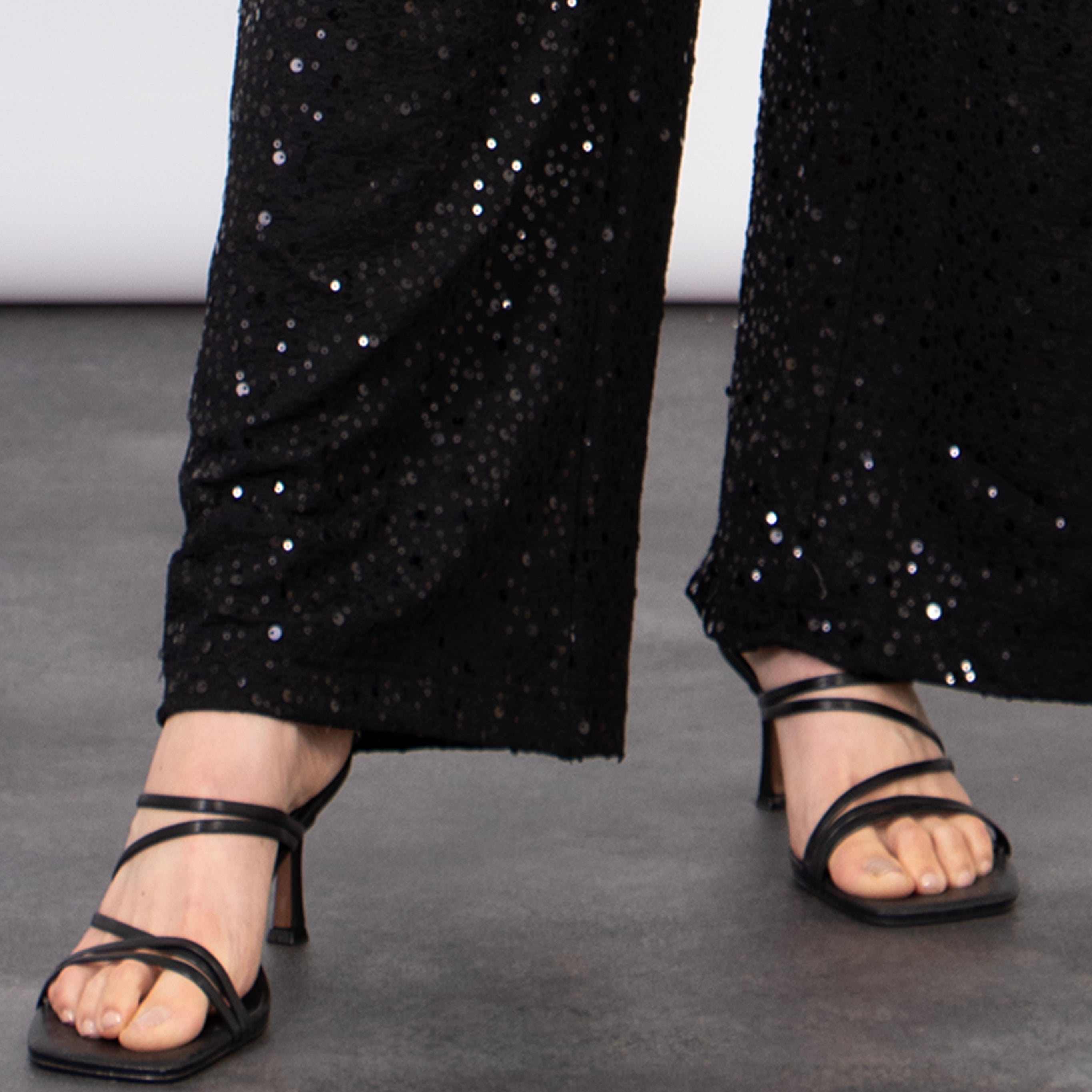 Classic wide leg trousers crafted from a sparkly sequin fabric. Showcasing an elasticated waist, pockets and large scattered sequin accents. Pair with your favourite top and dress up this party season.