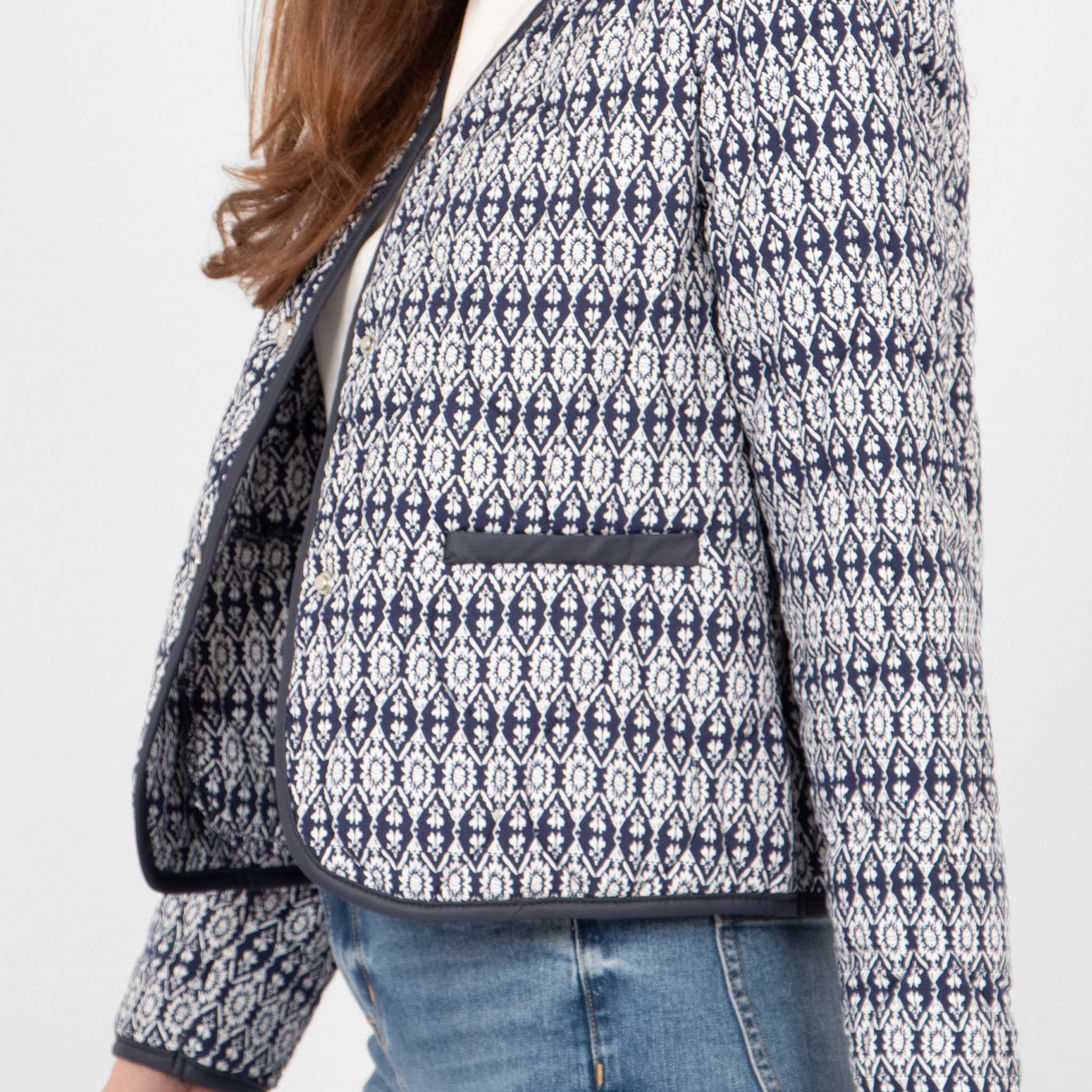 Greta Lightweight Box Jacket - Navy Blue, Aztec