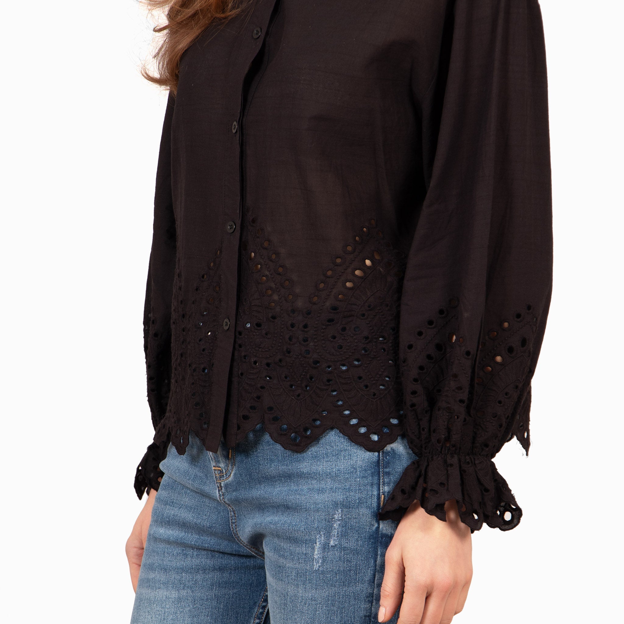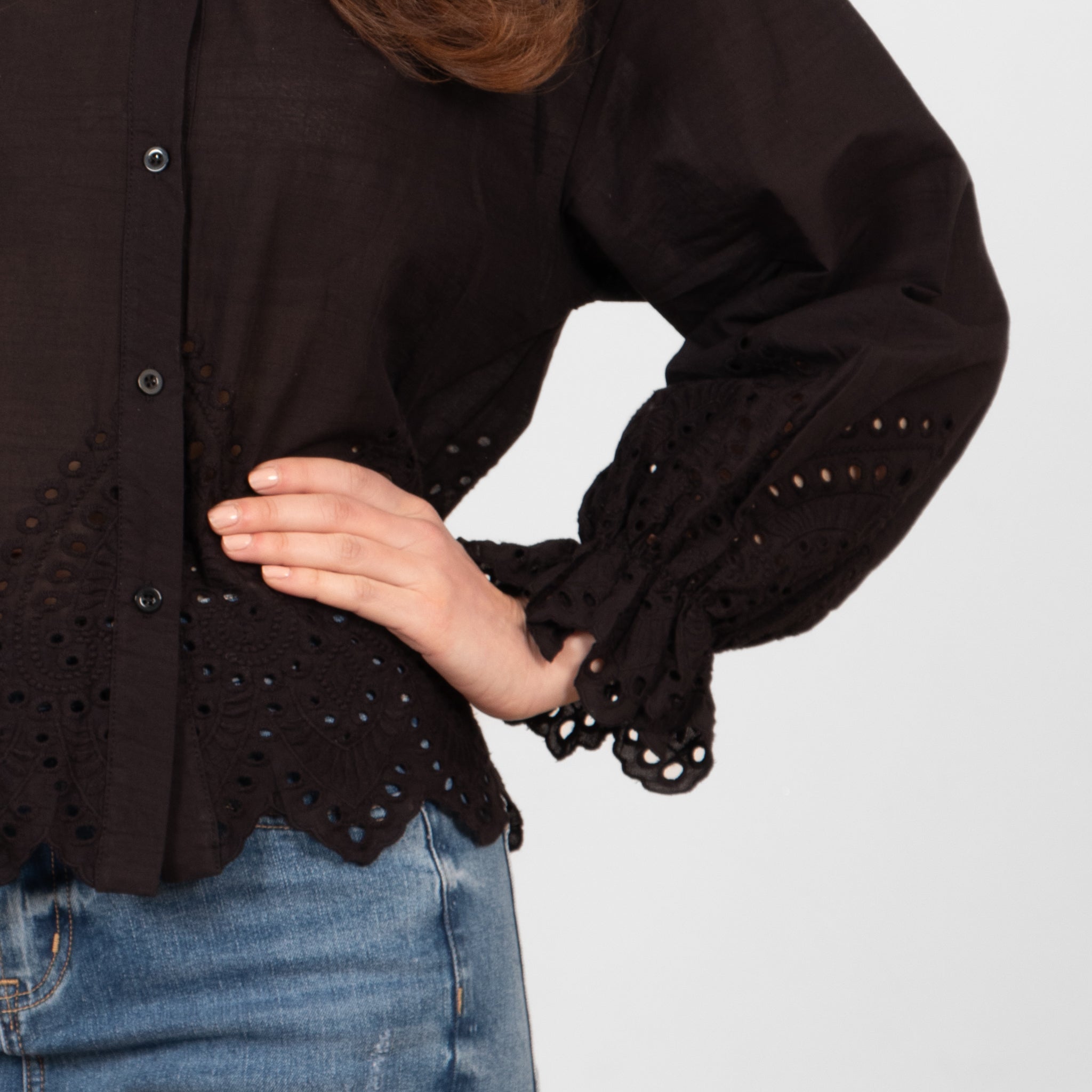 Hattie Long Sleeve Shirt - Black, Broderie Anglaise