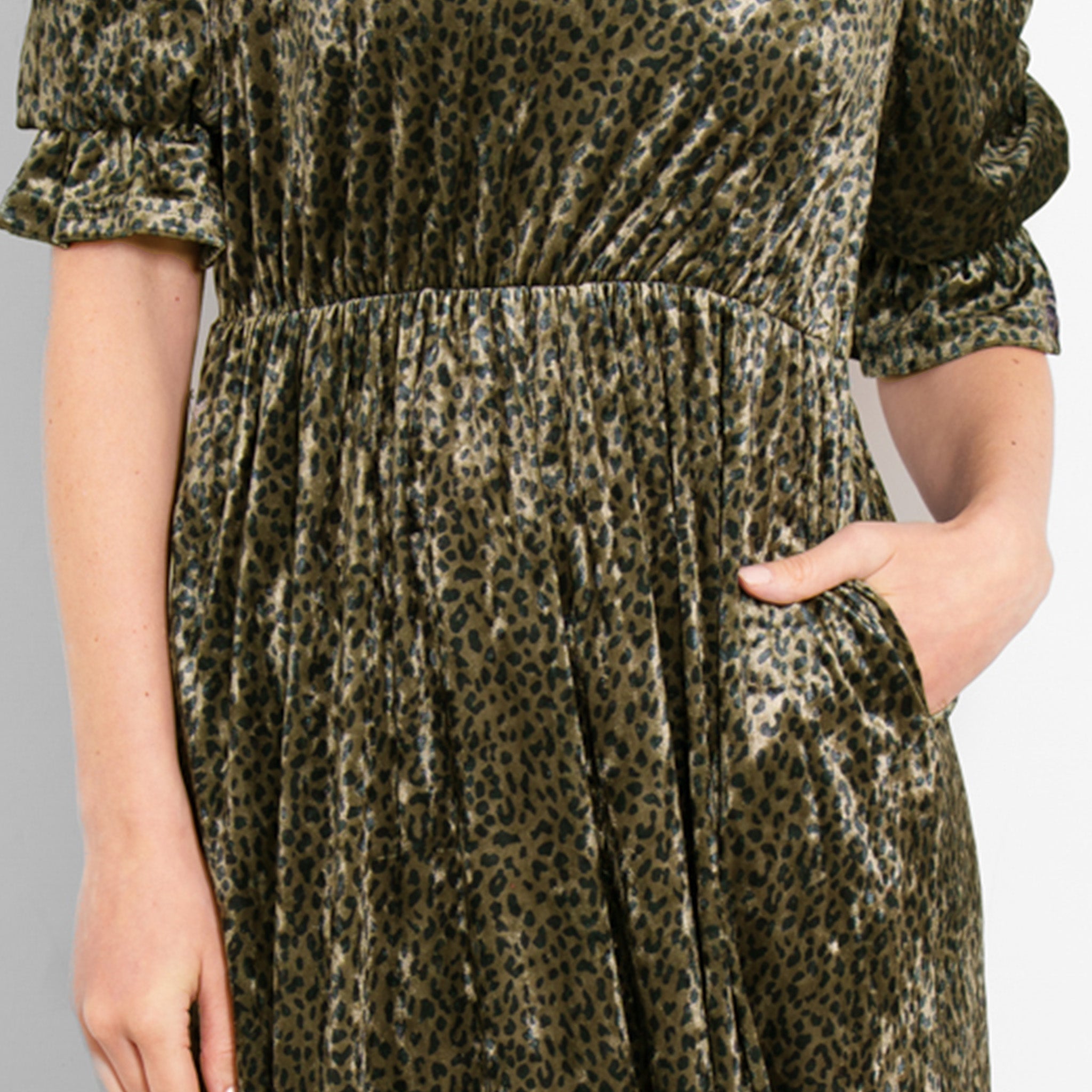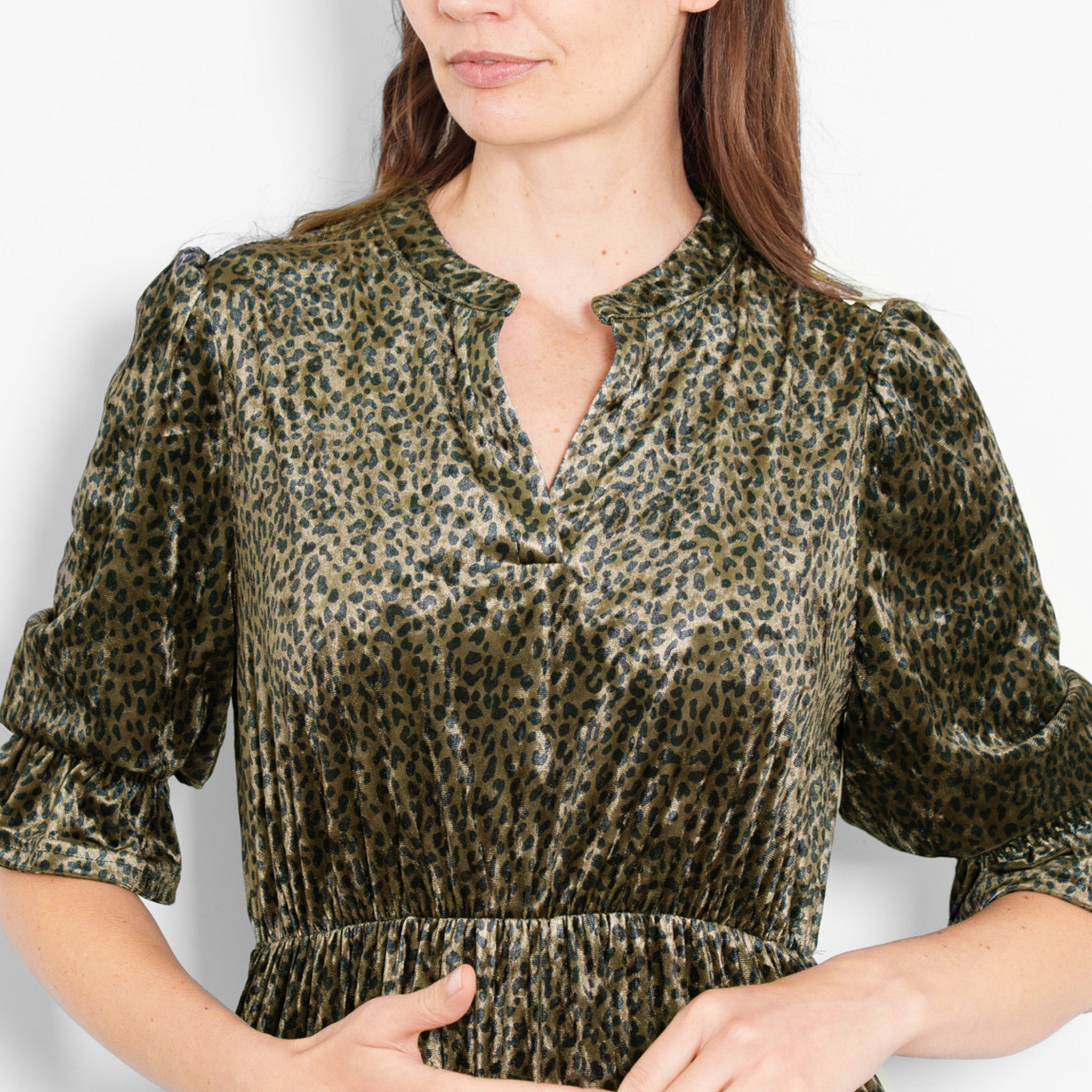 Pandora V-Neck Midaxi Dress- Khaki, Velvet Leopard