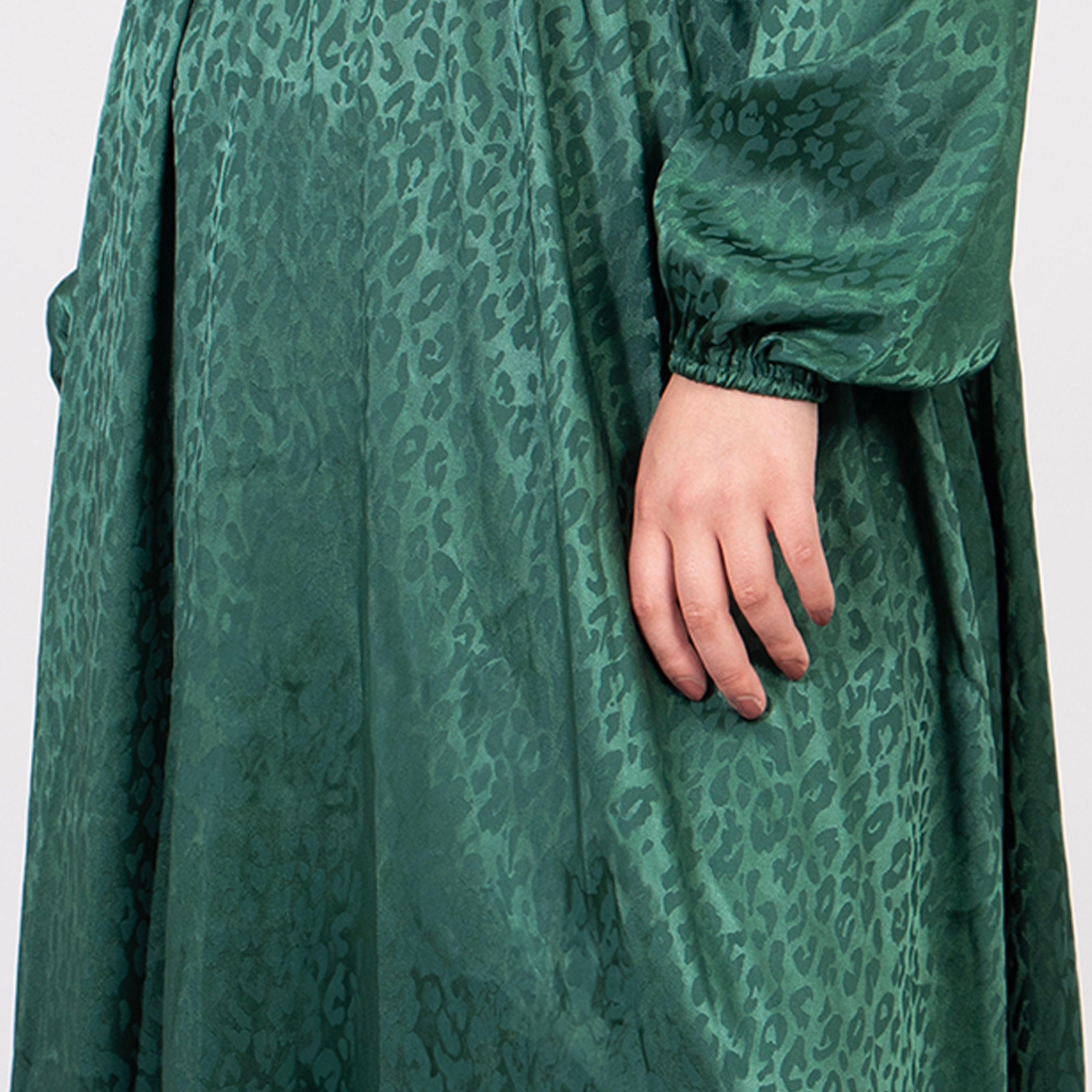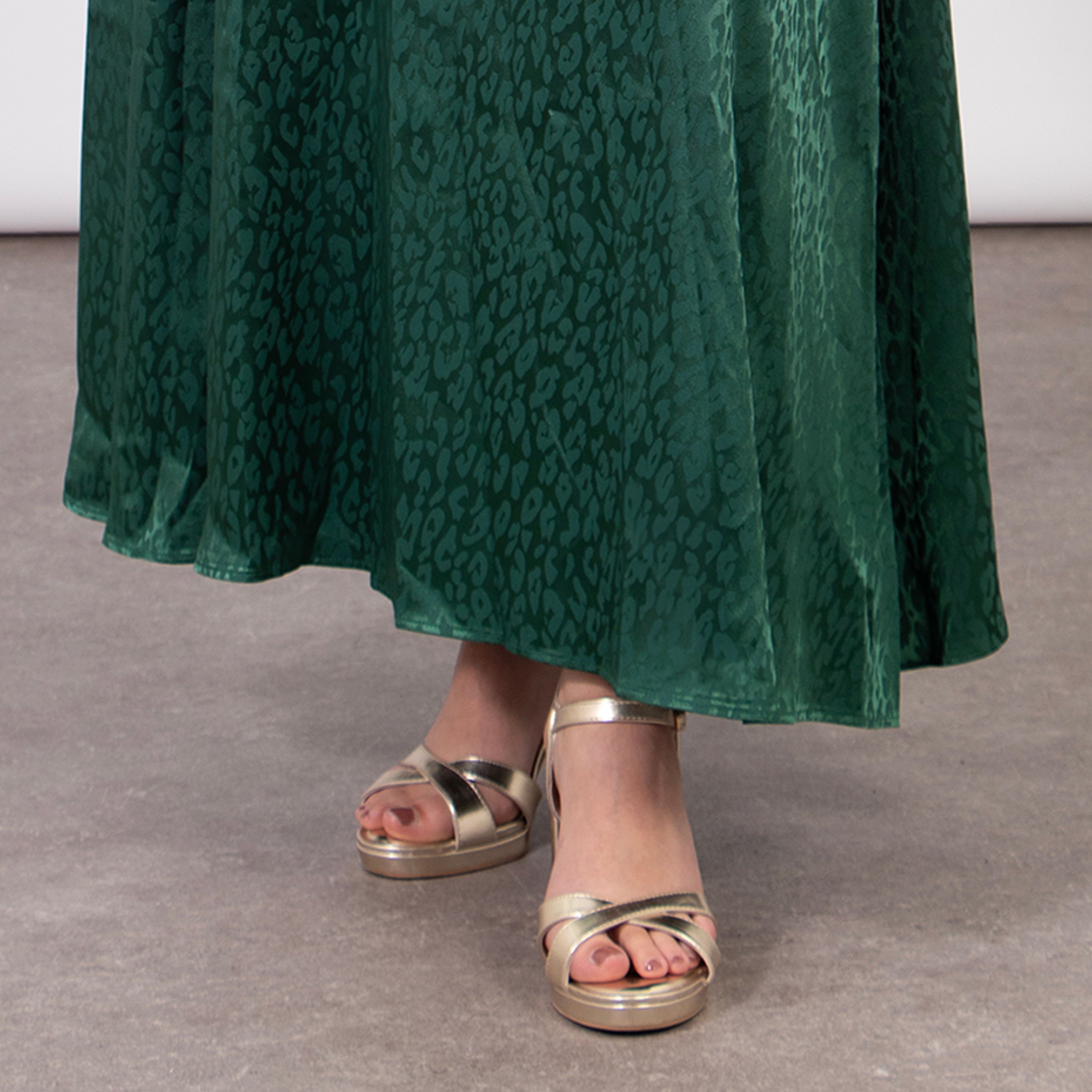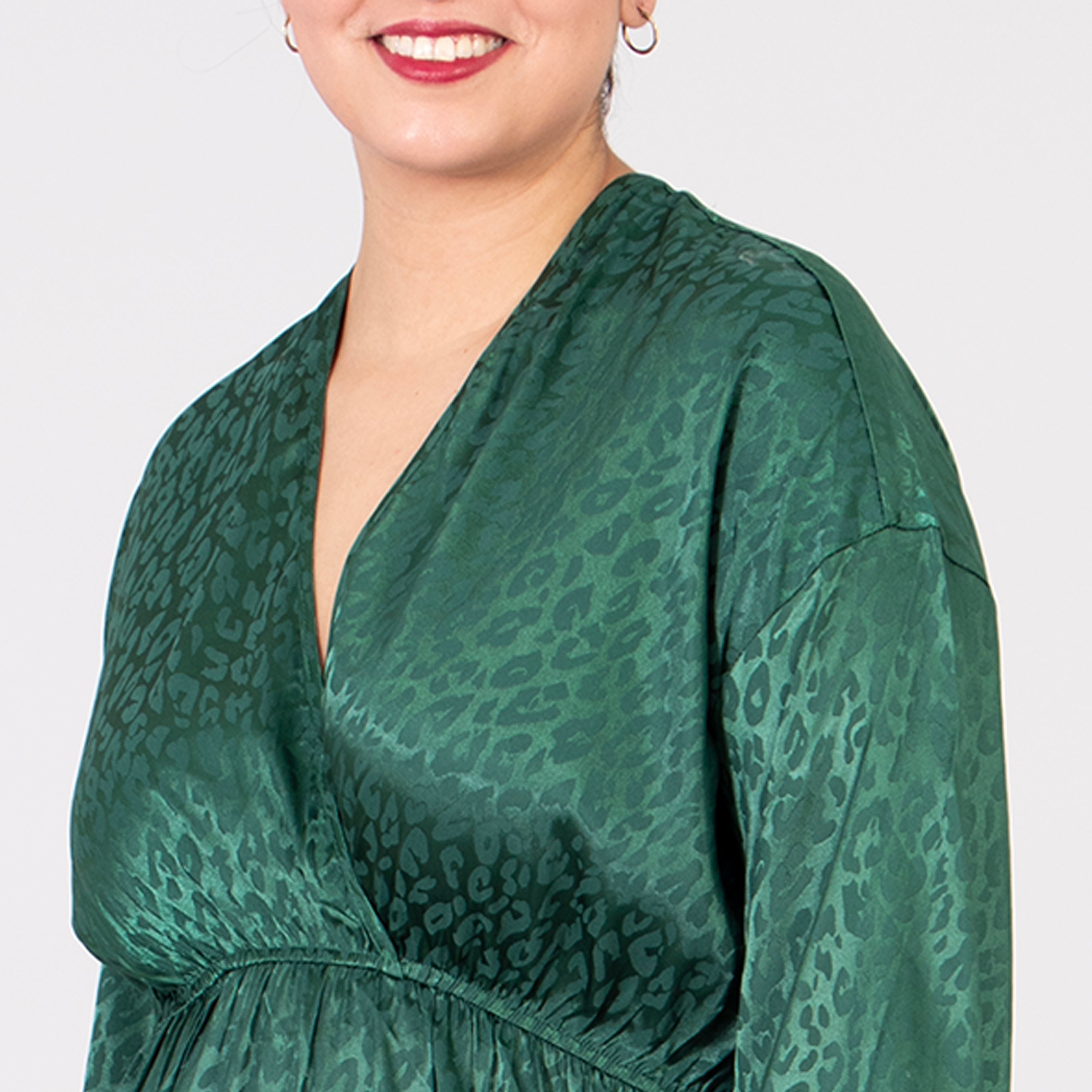 A chic green leopard print maxi dress crafted from soft, silky viscose blend. Showcasing a flattering wrap top, V-neck and empire waist line. This dress is a perfect occasion piece designed to create a flawless silhouette.