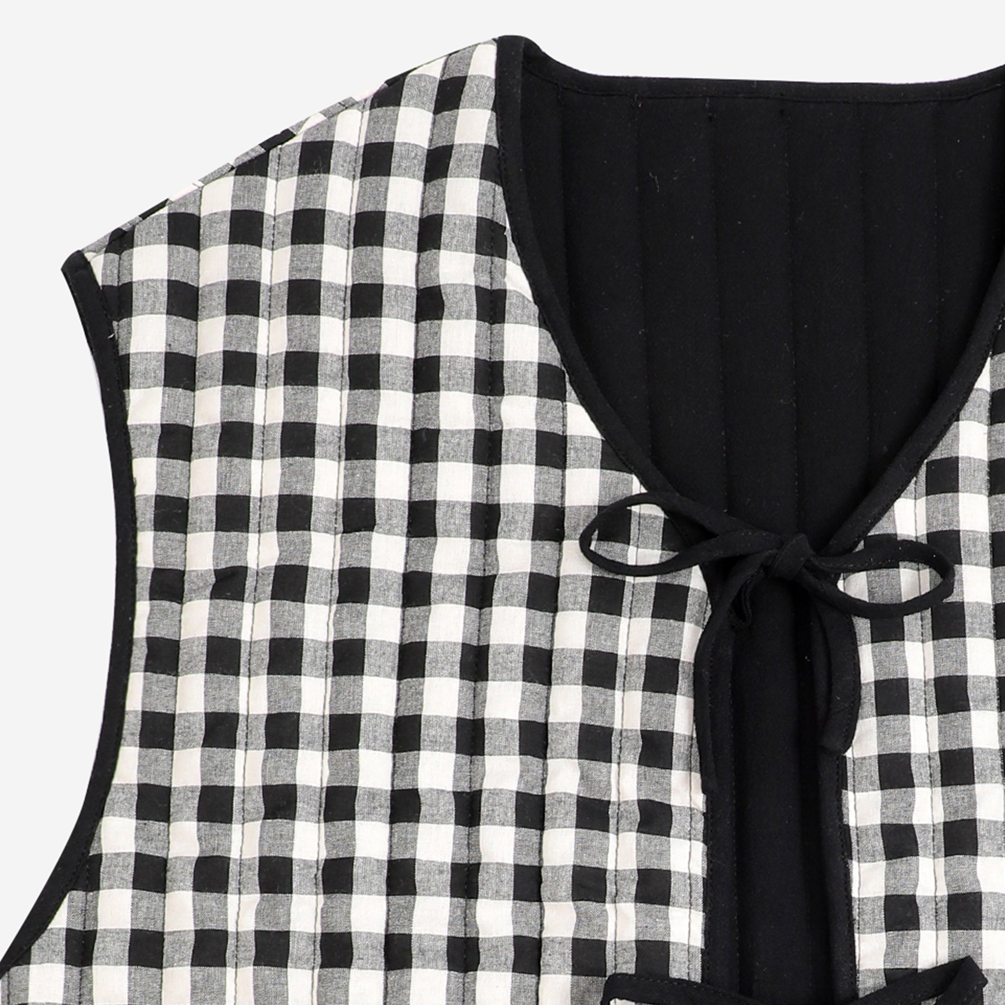 Tabby Quilted Reversible Gilet - Black/Cream, Gingham